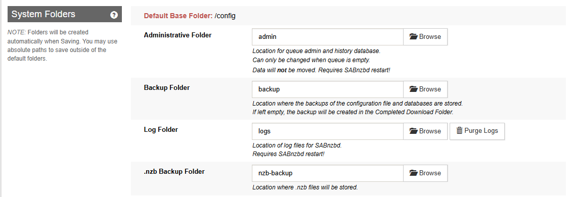 Using the .nzb Backup Folder is still recommended as it is useful for dupe detection (hash matching) or if you need to retry something from the past. The default is empty, we picked history because it is easy. It'll end up in the /config folder for Docker, which isn't crazy... but this is only compressed nzb files, so it can end up pretty big. The choice is yours what you prefer.
